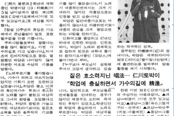 MBC 강변가요제 대상 인하대) 박영미양 짙은 호소력지닌 창법 .. .. 인천 토박이 "학업에 충실하면서 가수의길에 정진" 인하대 불문과2학년에 재학중인 박영미양(19)..